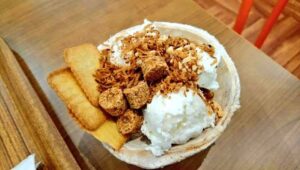 The original Chendol is an iconic Malaysian dessert consisting of  green glass jelly, red beans, coconut milk and palm sugar syrup. Also, you have to come early to enjoy their most popular dish, the original chendul, which is often in high demand. Additionally, they preserve the history of Nyonya cuisine with their passion reflected in every delicious dessert they serve.